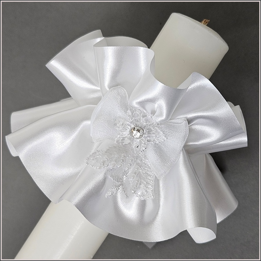 Satynowy okapnik na świecę komunijną lub do chrztu. Wykonany z taśmy satynowej PREMIUM o szerokości 8 cm