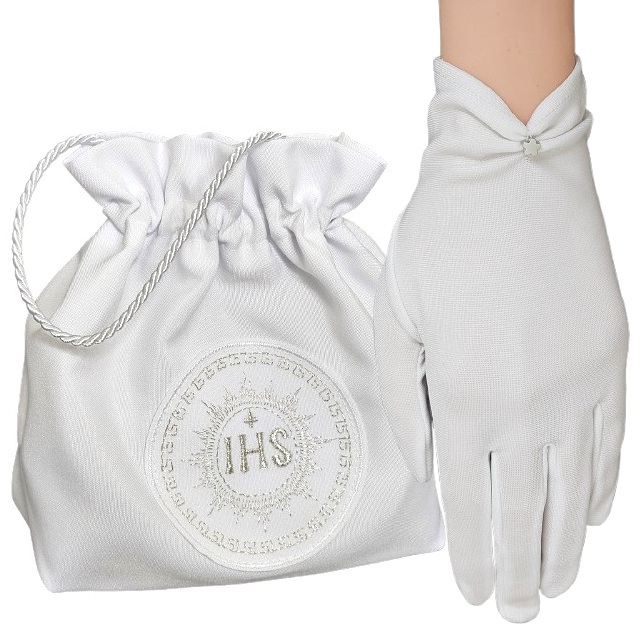 Komplet komunijny do alby lub sukienki komunijnej: Torebka i rękawiczki